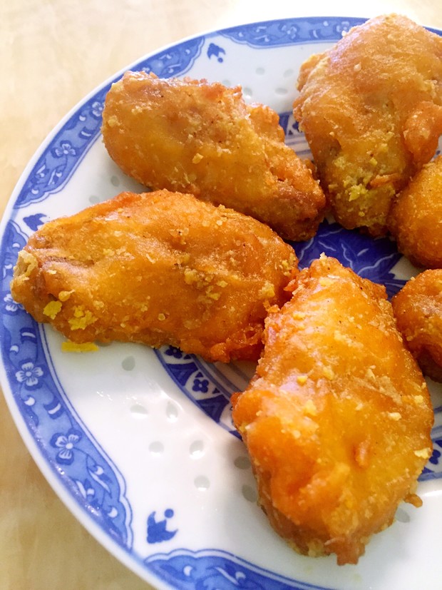 - 蛋黄开始起泡后加入鸡翅,让鸡翅裹满蛋黄