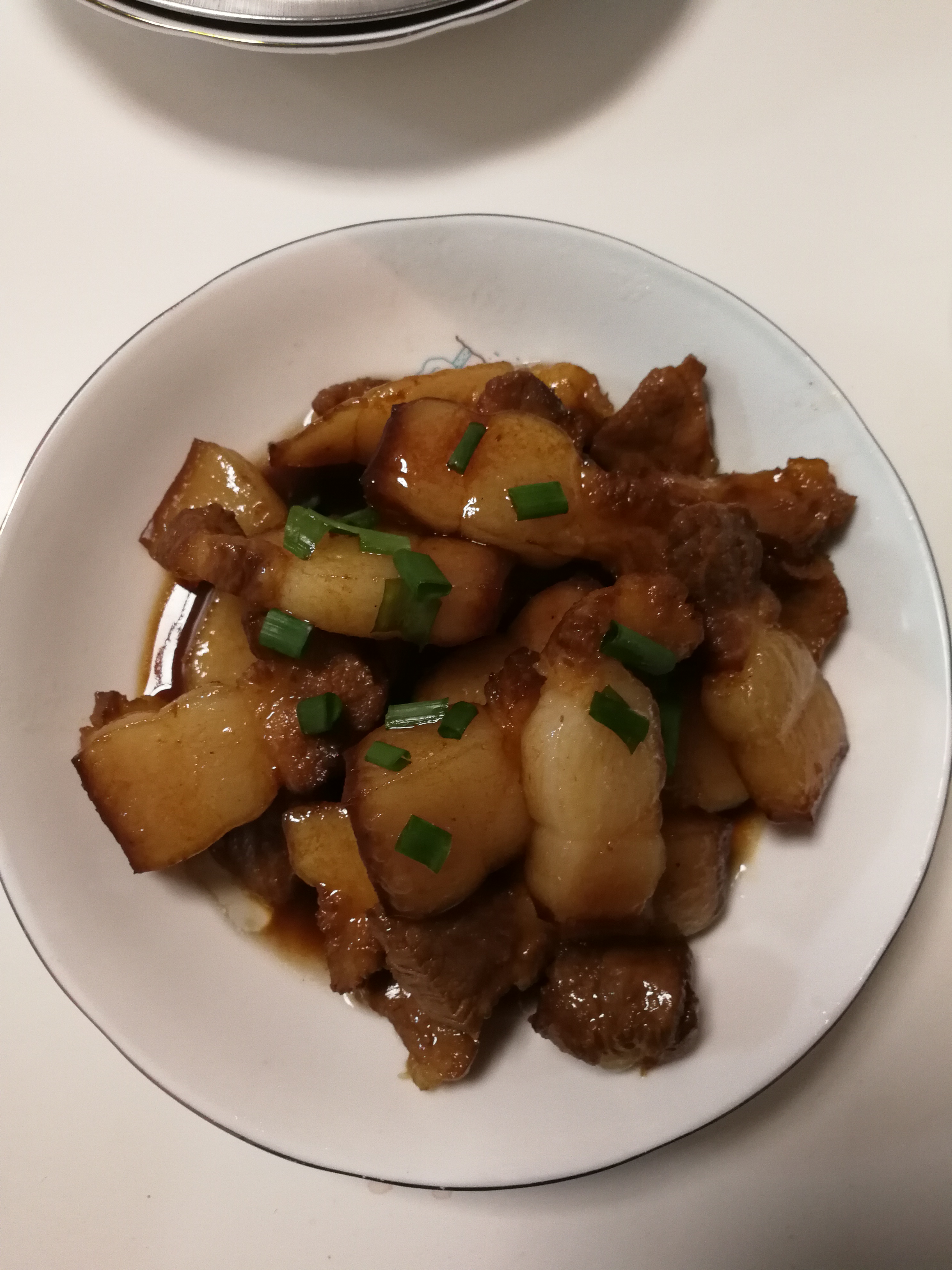 6. 一段时间后,大火收汁,盛出,撒上切好的小葱